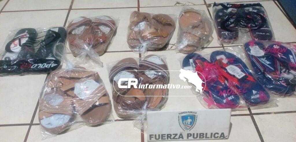 Por su parte, oficiales destacados en el distrito de San José de Upala, durante un operativo realizado por la comunidad de El Delirio, evitaron que un costarricense introdujera al país 50 pastillas de diversos tipos, además de un centenar de prendas de vestir, varios pares de zapatos, bolsos para mujer y diversos cosméticos.