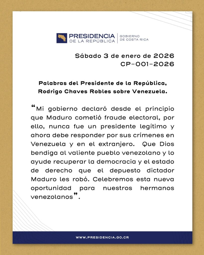 Que Dios bendiga al valiente pueblo venezolano y lo ayude recuperar la democracia y el estado de derecho que el depuesto dictador Maduro les robó. Celebremos esta nueva oportunidad para nuestros hermanos venezolanos”.