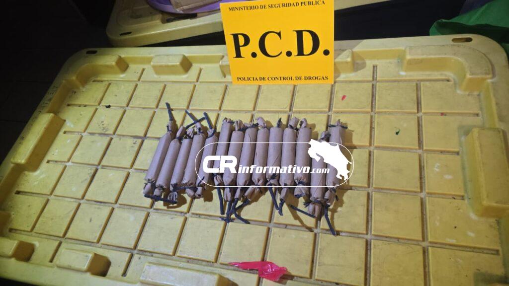 Producto de esta intervención fueron detenidos un sujeto de apellido Brenes Delgado, con antecedentes por transporte y tenencia de drogas, y una mujer apellidada Guzmán Arce, con expediente judicial por introducción de drogas a un centro penal y transporte de drogas.