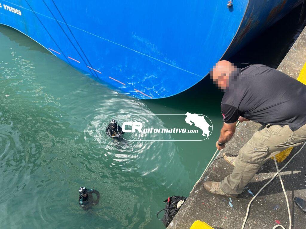 Como parte de las acciones permanentes que se desarrollan en el marco de la Operación Soberanía, oficiales del Grupo Nacional de Buzos del Ministerio de Seguridad Pública realizaron una inspección subacuática a un buque, en el puerto Gastón Kogan en Moín, Limón, logrando ubicar anomalías en un compartimento ubicado en el casco de la embarcación.