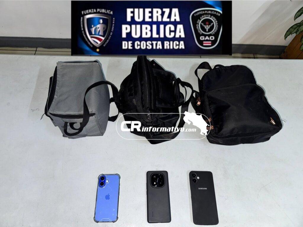 Los detenidos responden al apellido Marchena, Carvajal y Ampié. La Fuerza Pública recuperó algunas pertenencias como celulares y bolsos de los afectados.