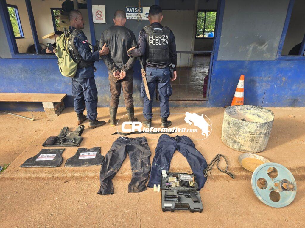 Horas después, en Crucitas, oficiales aprehendieron a dos sujetos de apellido Blando y Obando, ambos de nacionalidad nicaragüense y con estatus migratorio irregular, a quienes se les decomisaron varias herramientas utilizadas para la minería ilegal.