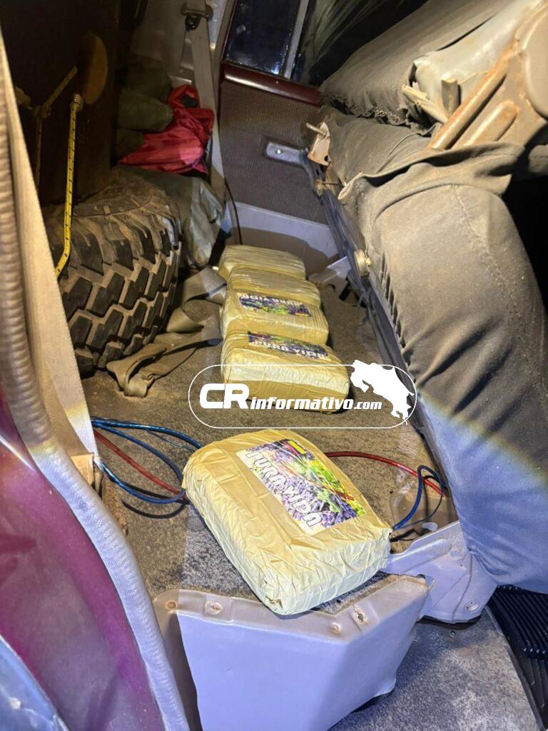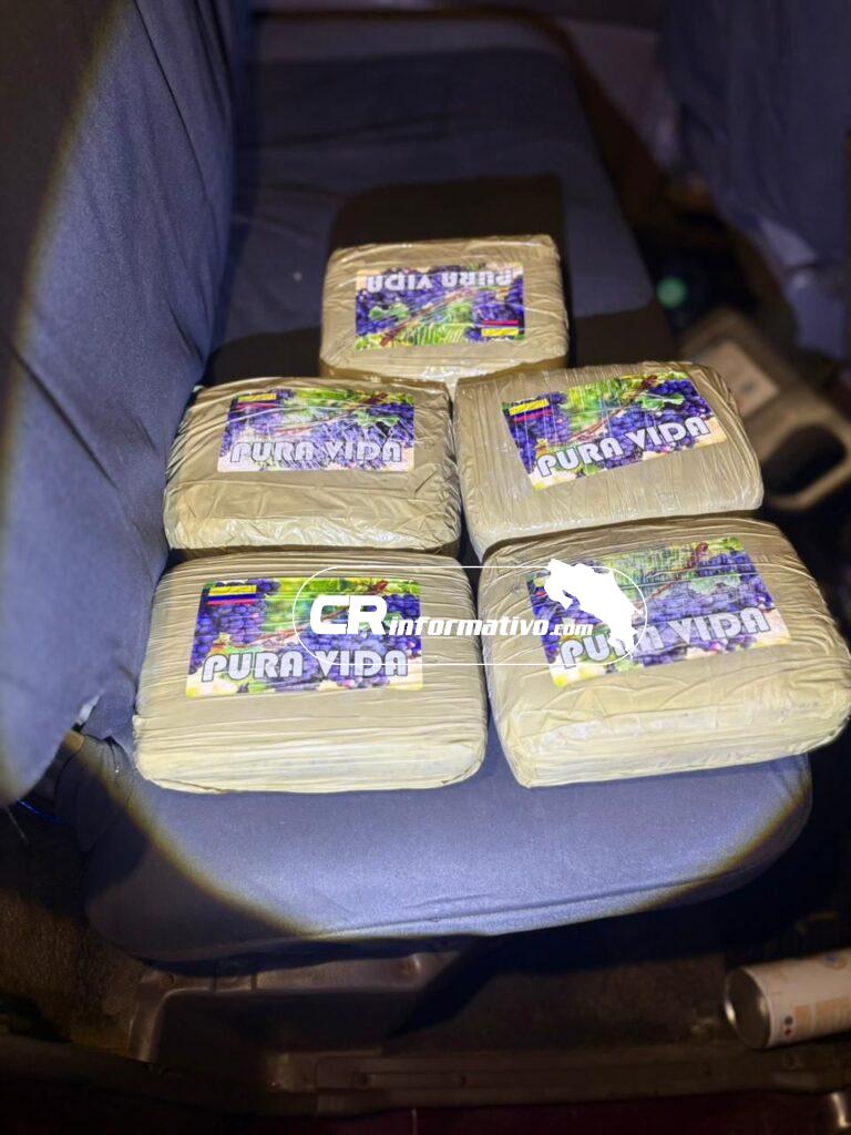 Minutos después, personal del Organismo de Investigación Judicial (OIJ) se presentó en el sitio y, tras la revisión del vehículo, se localizó un total de cinco paquetes de droga tipo marihuana.
