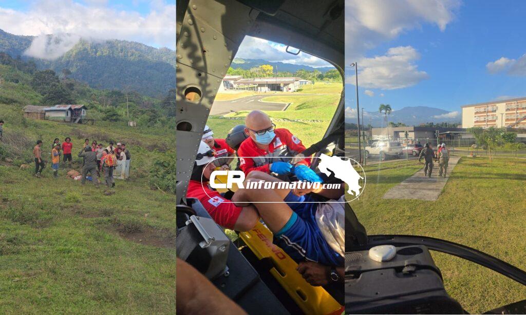 Tras ser estabilizado, el joven fue trasladado vía aérea al Hospital William Allen, en Turrialba, donde quedó bajo valoración y atención del personal médico.