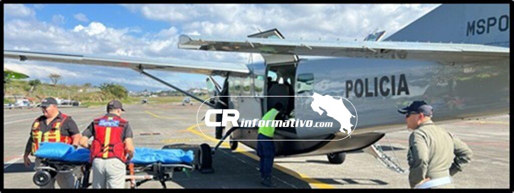 Los pilotos de Vigilancia Aérea a bordo de la aeronave MSP 024 fueron apoyados por médicos especialistas, quienes estabilizaron al bebé, para posteriormente trasladarlo hasta el Aeropuerto Tobías Bolaños en Pavas y luego al Hospital de Niños, donde recibirá la atención médica debida.