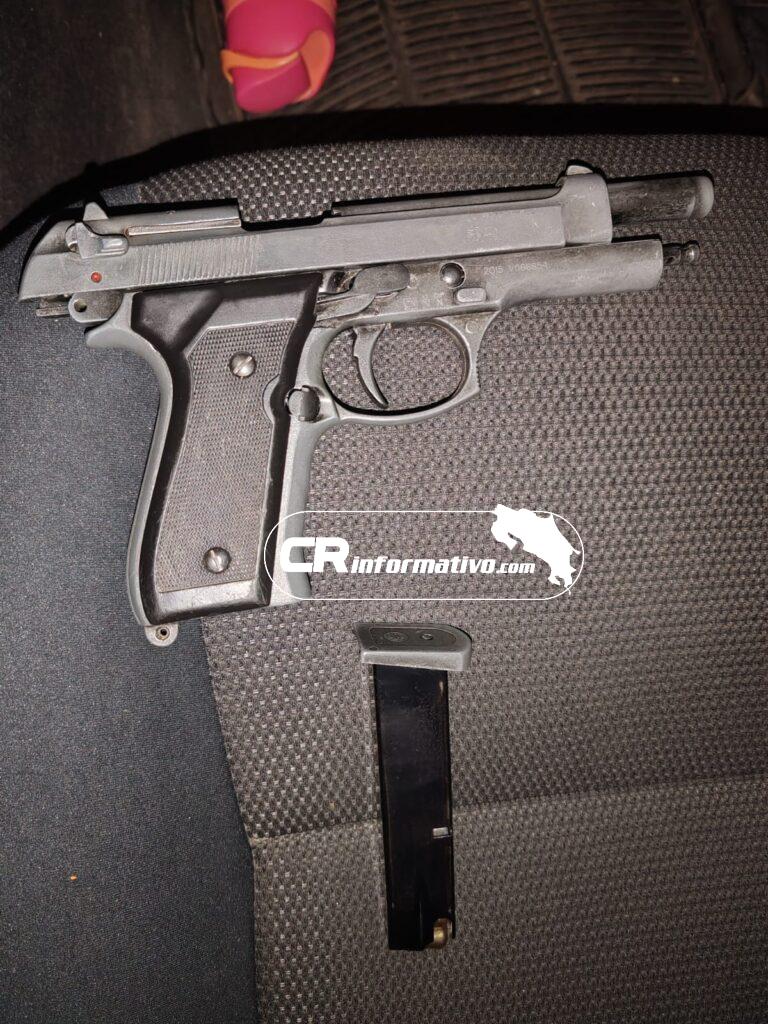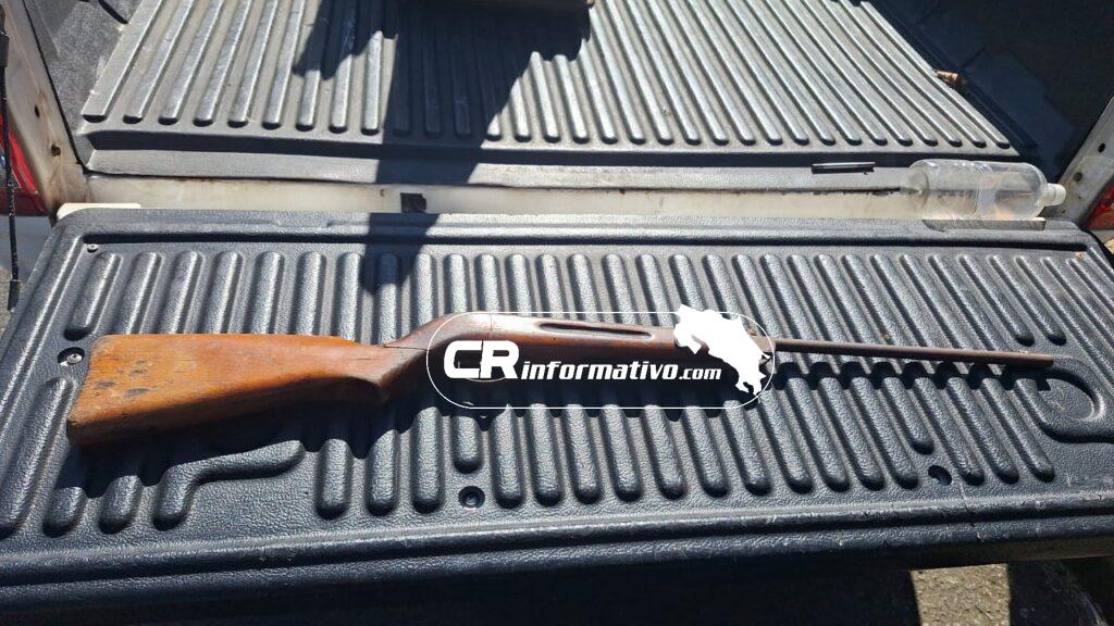 El primero es un rifle de aire comprimido, conocido como rifle de copas, el cual era utilizado por un sujeto de apellido Montero, habitante de la calle, quien, al parecer, amenazaba a quienes transitaban por la comunidad Calle Nueva en San Rafael, Heredia.