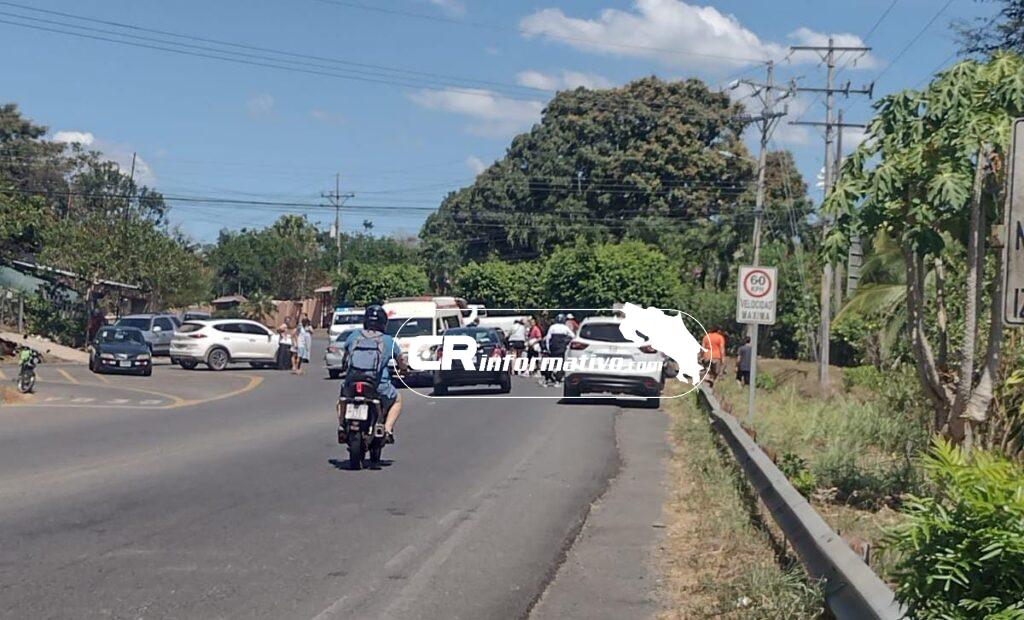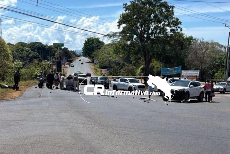 La mañana de este domingo se registró una colisión de consideración entre una motocicleta y un vehículo liviano en la conocida entrada vieja a Orotina, situación que generó preocupación entre los conductores que transitaban por el sector.
