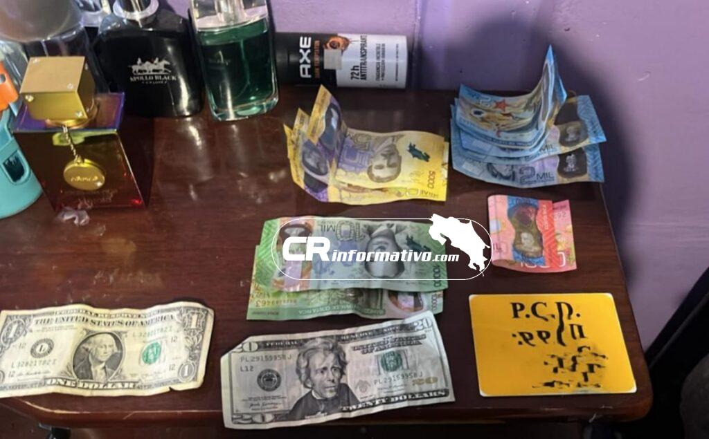 Producto de la intervención policial, se decomisaron 16 dosis y 12 gramos de crack, diez envoltorios y 79 gramos de marihuana, cinco gramos de cocaína, 135 mil colones, 24 dólares y utensilios para la preparación y dosificación de drogas.