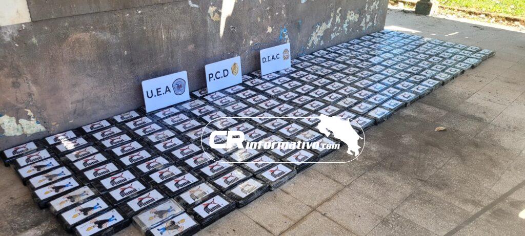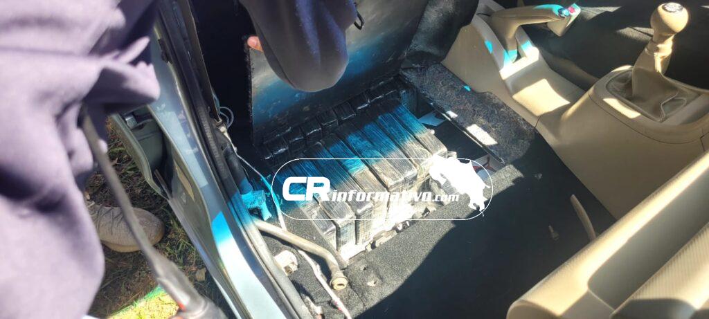 198 kilos fueron decomisados dentro de un vehículo que mantenía un compartimiento oculto en el piso de uno de los tres automóviles intervenidos en el distrito de la Uruca, San José, y 98 más tras un allanamiento coordinado con la Fiscalía y realizado en horas de la noche de ayer en una vivienda ubicada en ese mismo distrito.