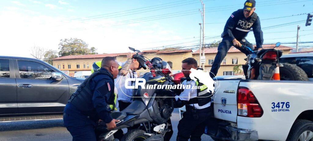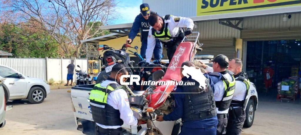 En el marco de los operativos preventivos desplegados en la zona costera de Guanacaste, la Fuerza Pública y la Policía de Tránsito sacaron de circulación un total de 14 motocicletas que transitaban en condición irregular en las comunidades de Cartagena y Tempate, pertenecientes al cantón de Santa Cruz.