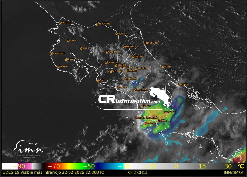 El Instituto Meteorológico Nacional (IMN) informó que a esta hora continúan desarrollándose lluvias y aguaceros de fuerte intensidad acompañados de tormenta eléctrica en el Pacífico Sur del país, y en menor medida en el Pacífico Central.