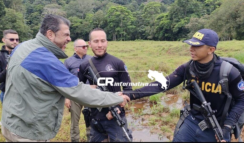 El jerarca estuvo en Crucitas donde informó la aprehensión de 20 personas conocidas como “coligalleros”, se ubicaron 20 tiendas artesanales, conocidas como “champas” dentro de un campamento y tres plantas eléctricas.