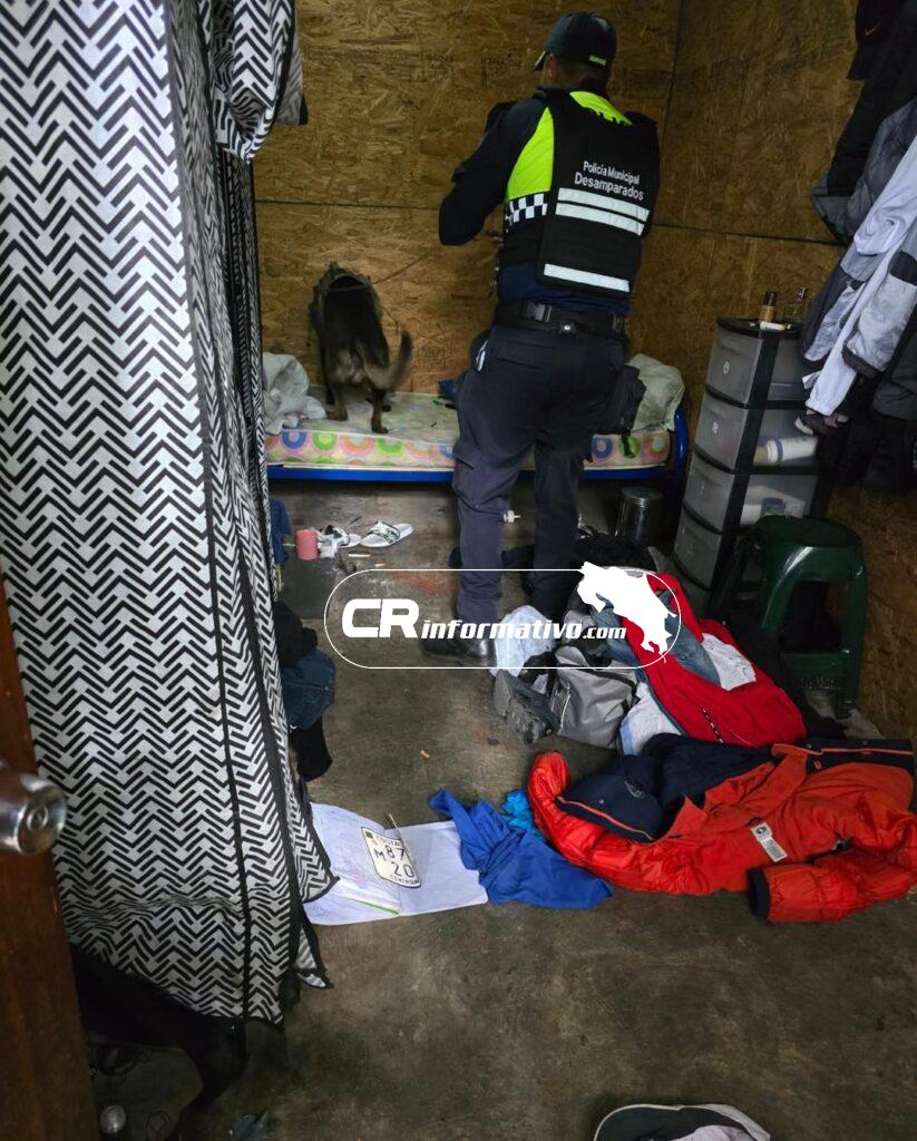 Por solicitud de la Fiscalía, se contó con el apoyo especializado de la Unidad K-9, participando dos guías caninos junto a los ejemplares Kronos y Luke, quienes efectuaron una inspección exhaustiva en el interior de las tres estructuras.