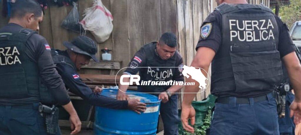 Oficiales de la Fuerza Pública de Costa Rica decomisaron 960 litros de gasolina que se encontraban almacenados de forma irregular en una propiedad ubicada en Tiricias de Pocosol, muy cerca del Río San Juan, en la zona norte del país.