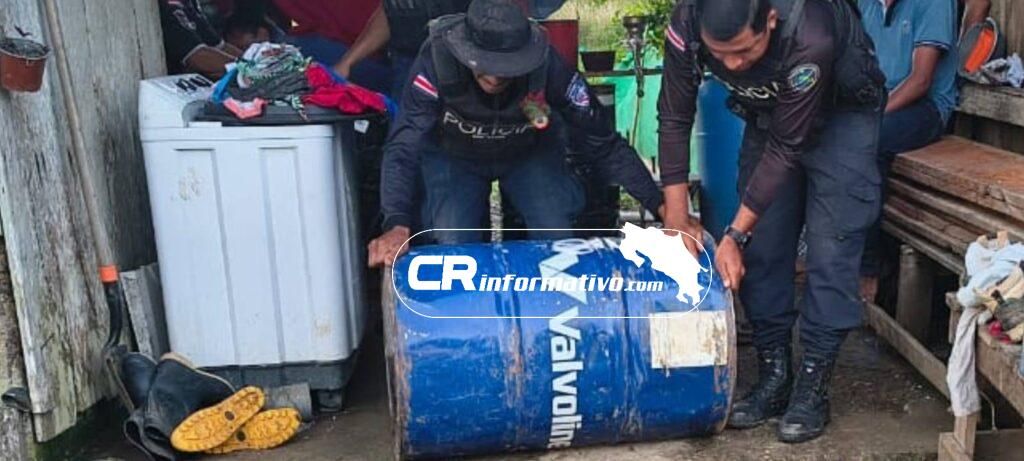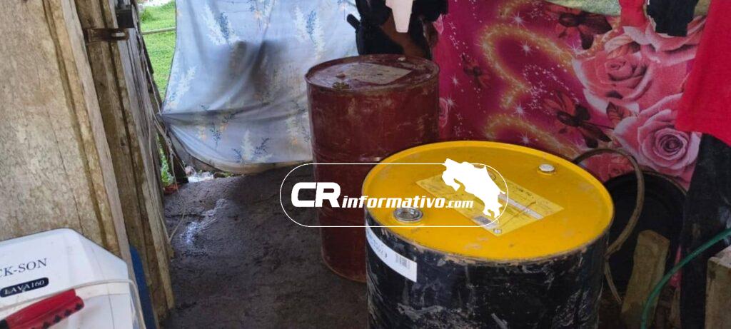 Oficiales de la Fuerza Pública de Costa Rica decomisaron 960 litros de gasolina que se encontraban almacenados de forma irregular en una propiedad ubicada en Tiricias de Pocosol, muy cerca del Río San Juan, en la zona norte del país.