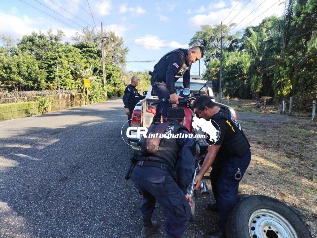 Además, la motocicleta fue decomisada y puesta a la orden de la Policía de Tránsito de Costa Rica, cuyos oficiales emitieron varias infracciones por incumplimientos a la normativa vial.