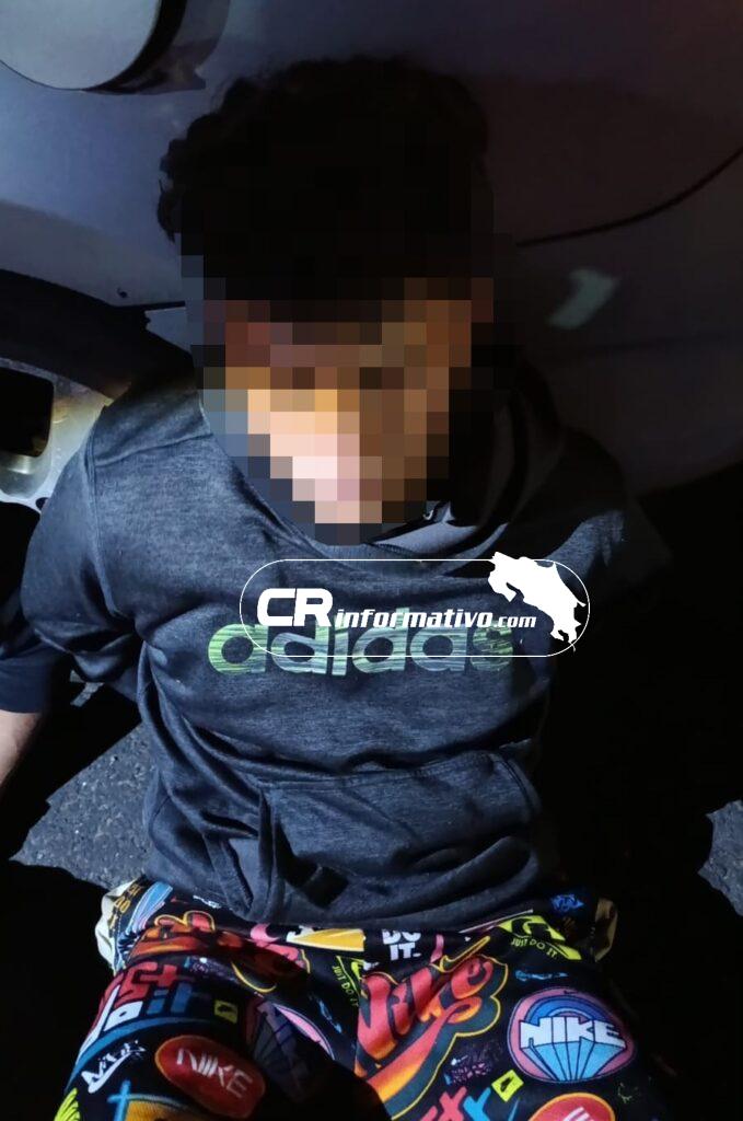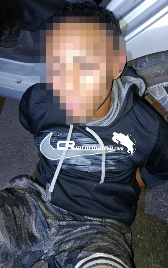 Dos sujetos sospechosos de asaltar a un conductor y robarle su vehículo, además de una tarjeta de débito, fueron aprehendidos por oficiales de la Fuerza Pública la madrugada de este martes en el distrito de San Rafael Arriba de Desamparados.