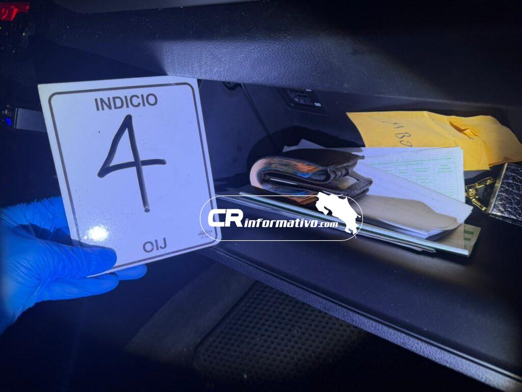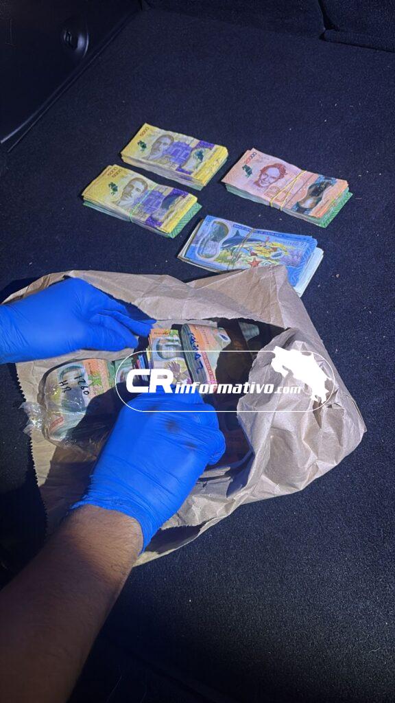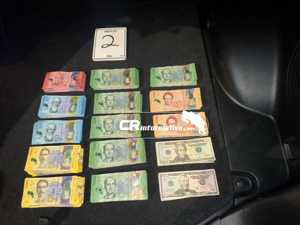 El imputado fue interceptado por agentes del Organismo de Investigación Judicial (OIJ) cuando se desplazaba por las cercanías del peaje de sobre la ruta 32, a bordo de un vehículo blanco en el que transportaba de manera oculta ₡15.499.000.00 y $2.153; además de marihuana, joyas y tres teléfonos celulares. Estos elementos fueron decomisados como parte de la investigación.