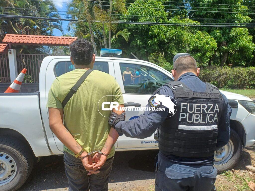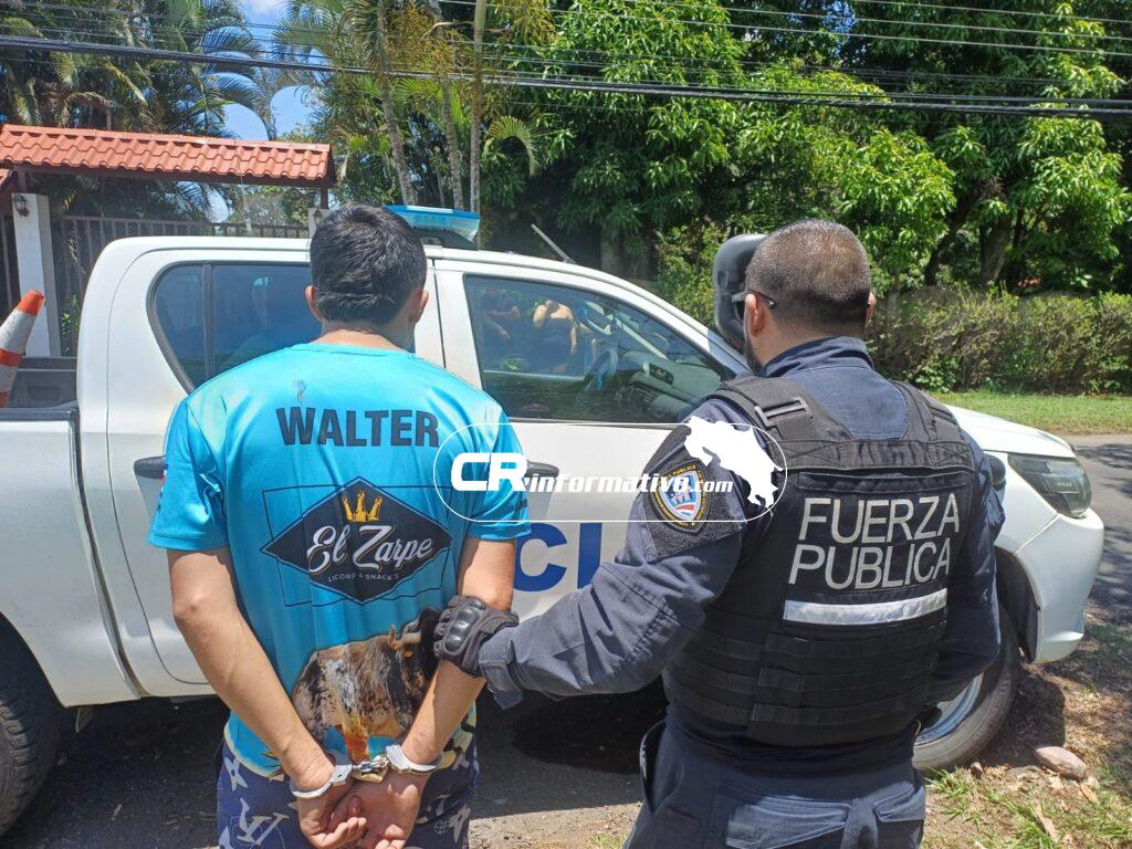 La señal ubicaba el vehículo en Turrúcares, sector de Los Portillos, por lo que los oficiales se desplazaron de inmediato al sitio. Al llegar al punto señalado, observaron a dos sujetos en el portón de una propiedad, quienes fueron intervenidos.