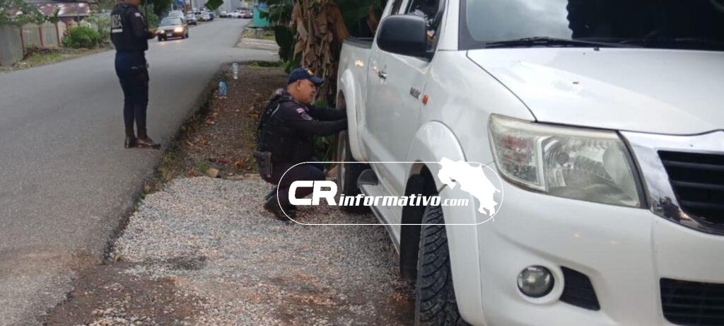 El otro automotor fue localizado por oficiales de la Fuerza Pública del cantón de Corredores, quienes patrullaban por la denominada «Calle del Chorizo», situada en Paso Canoas, frontera sur.