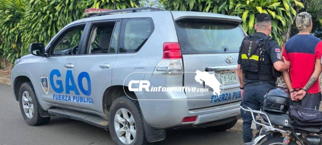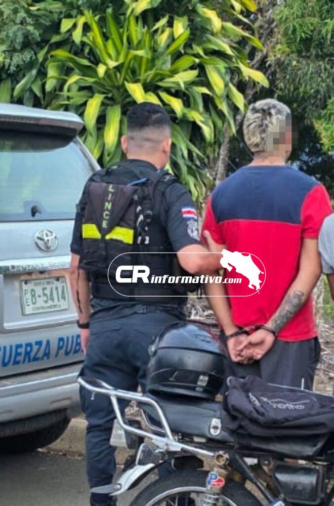 El hecho se registró la tarde del jueves en el sector conocido como Cruce de Las Ranas, en el distrito de San Isidro del General, cuando los oficiales observaron a los ocupantes de una motocicleta en actitud sospechosa. Al darle la señal de alto al conductor, este hizo caso omiso e intentó huir del lugar.