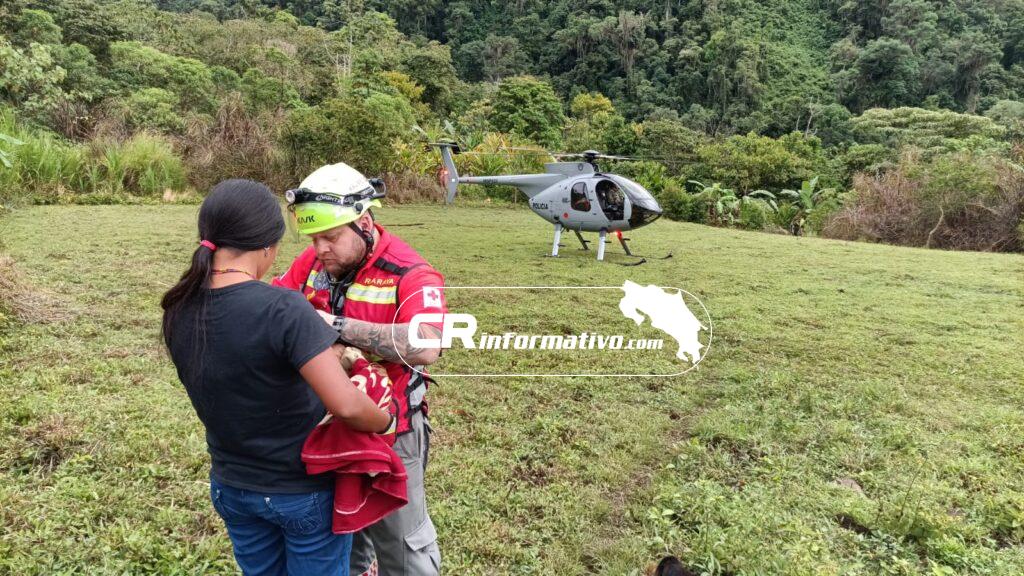 La operación se llevó a cabo en coordinación con la Cruz Roja Costarricense, permitiendo el traslado oportuno de los menores, quienes presentaban problemas respiratorios que requerían atención inmediata.