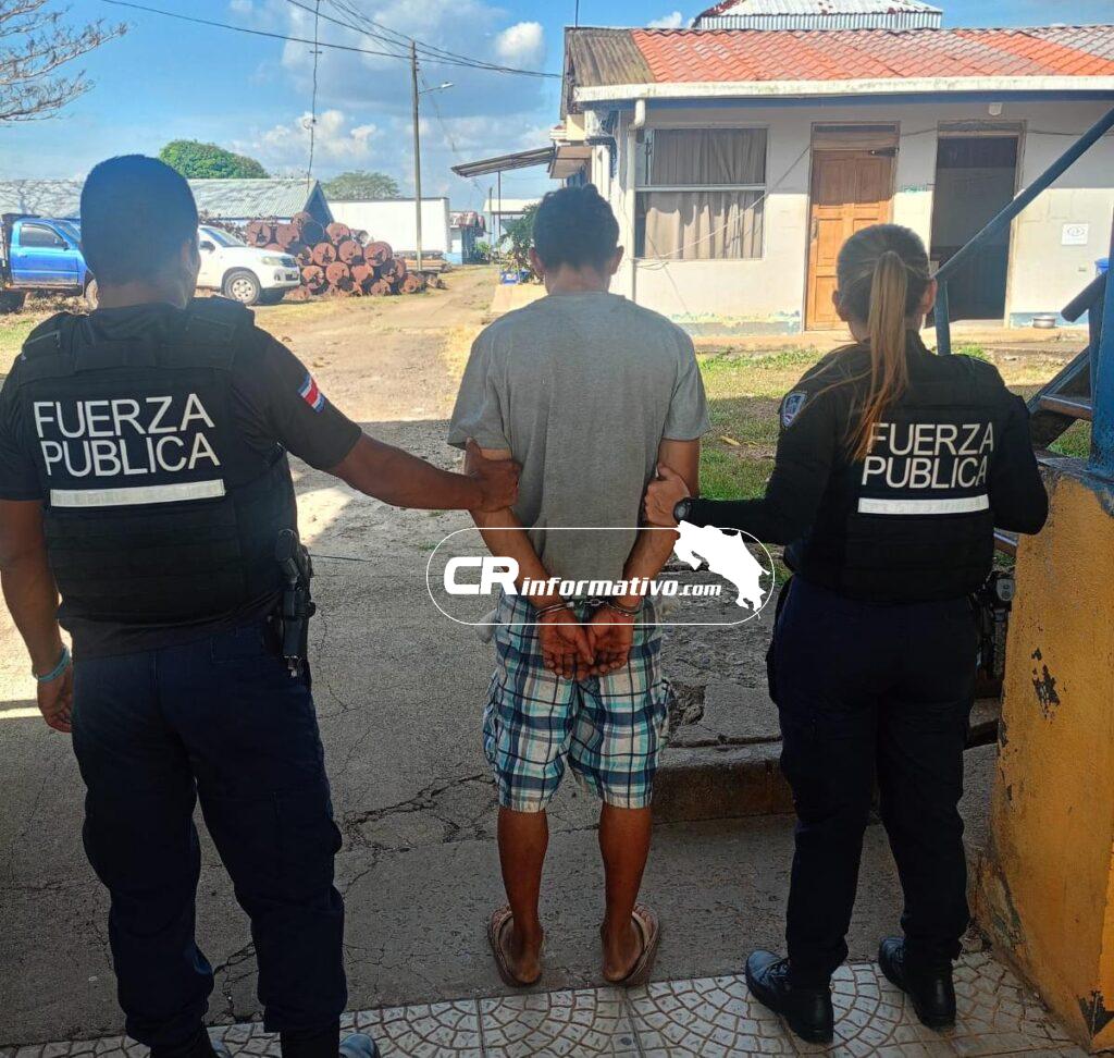 Siempre en Los Chiles, en su esfuerzo por prevenir delitos contra la vida y contra la propiedad, la Fuerza Pública aprehendió a un sujeto de apellido Salazar, quien se encontraba merodeando por la terminal de autobuses de esa ciudad.