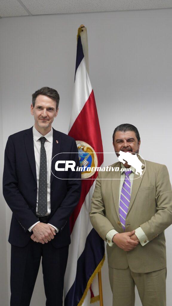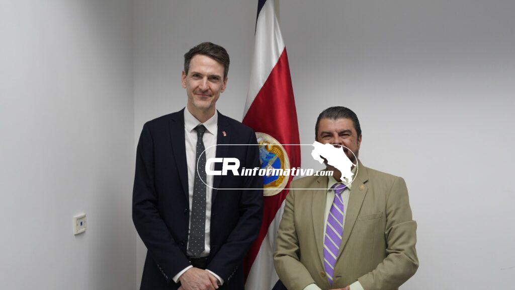El ministro de Seguridad Pública, Mario Zamora, sostuvo una reunión con el nuevo embajador designado del Reino Unido en Costa Rica, Edward John Stevens, con el objetivo de fortalecer los lazos de cooperación bilateral en materia de seguridad.