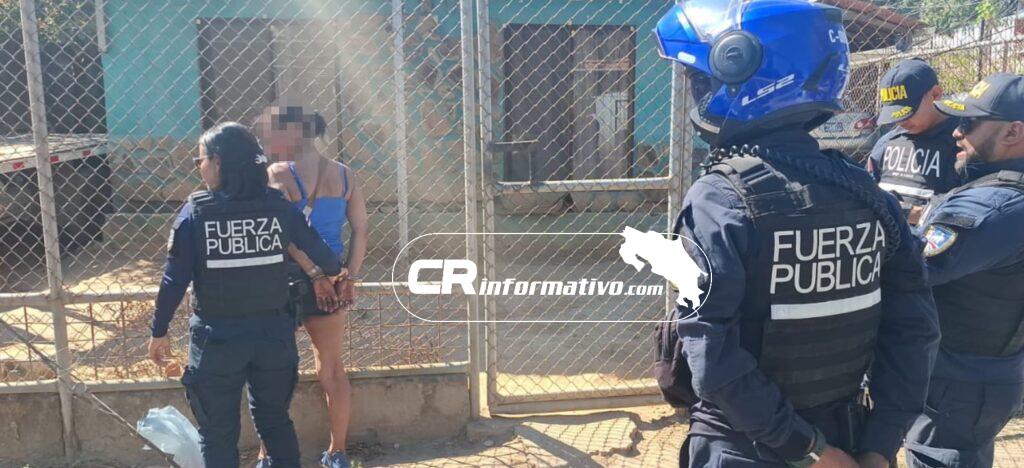 Por otra parte, oficiales de la Fuerza Pública destacados en Liberia aprehendieron a una mujer de apellido Mora, la cual era requerida por autoridades judiciales de Guanacaste y Liberia por el delito de venta de drogas.