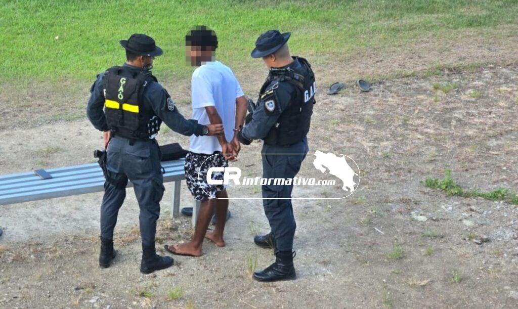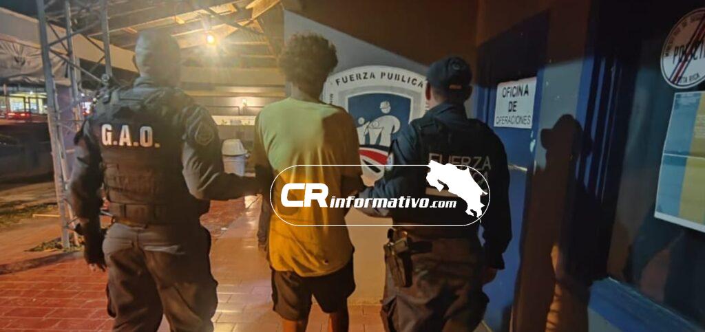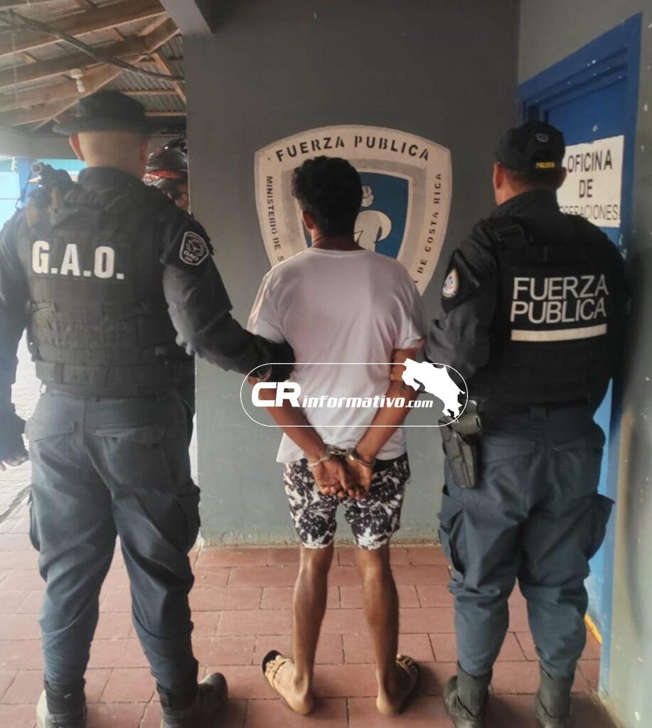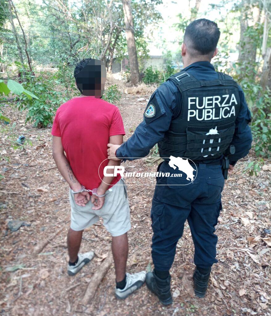 En otro patrullaje, pero en el barrio Estocolmo de la ciudad de Santa Cruz, la Fuerza Pública localizó a un hombre de apellido Díaz, el cual era requerido por la fiscalía de ese cantón por ser sospechoso de cometer un robo agravado.