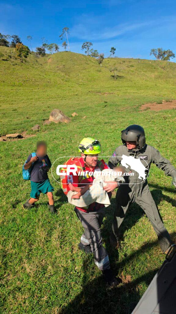 La menor, quien reside en Telire de Talamanca, Limón, requería atención médica urgente debido a la complejidad de su estado de salud y las limitaciones de acceso terrestre en la zona. Ante esta situación, se coordinó de manera inmediata con personal de la Cruz Roja Costarricense para efectuar la extracción segura tanto de la paciente como de su madre.