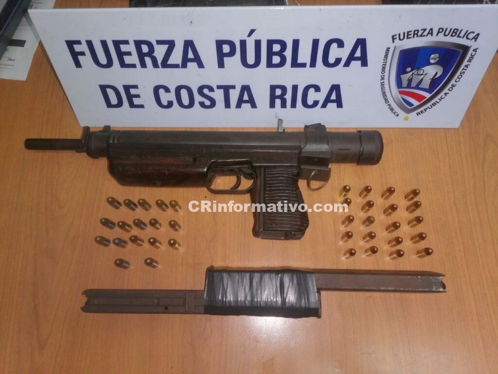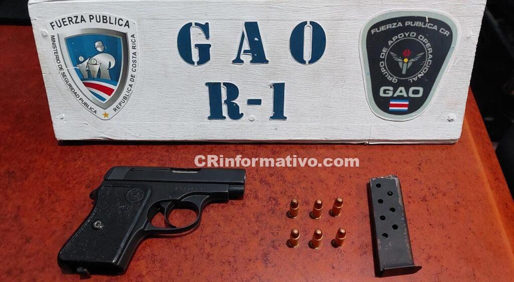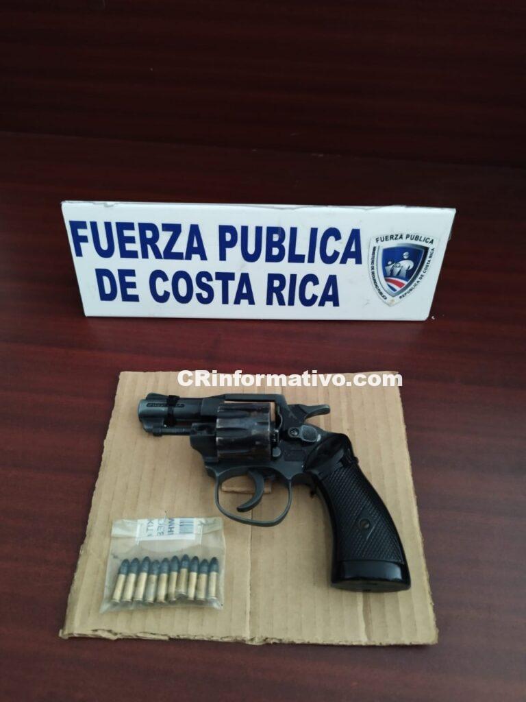 Mientras tanto, en el cantón de Vázquez de Coronado, la Policía arrestó a un sujeto de apellido Sacida, quien, al intentar huir, sacó de la pretina del pantalón un revólver y lo lanzó en vía pública.