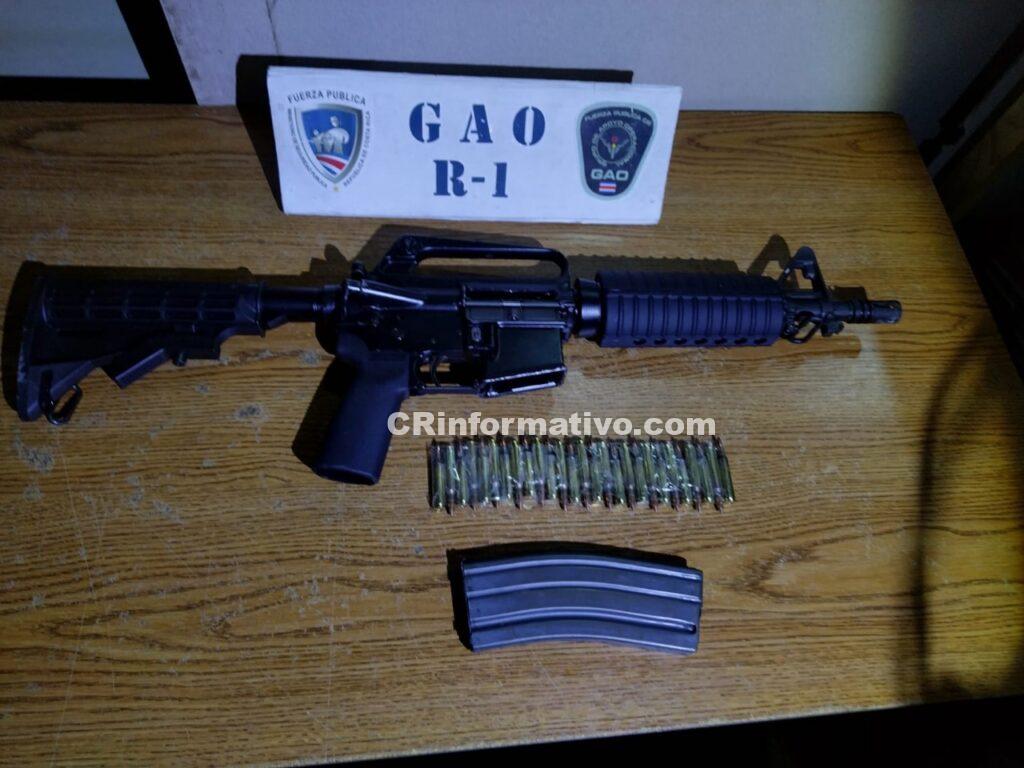 En San Francisco de Dos Ríos, los oficiales de la Fuerza Pública detuvieron a bordo de un vehículo a un sujeto de apellido Mora, quien se hacía acompañar de un menor de 16 años, al hombre se le decomisó un arma larga con 37 municiones.