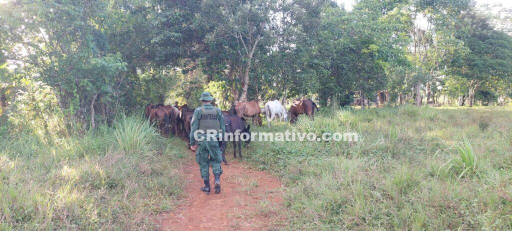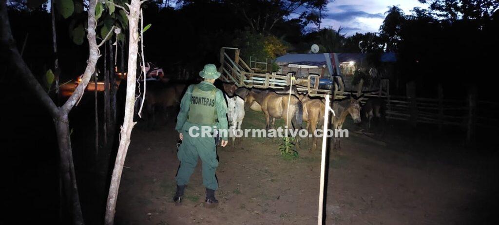 El cumplimiento tuvo lugar en la localidad de Isla Chica, cantón de Los Chiles, cuando en un recorrido por la zona varios oficiales fronterizos sorprendieron a dos nicaragüenses en condición migratoria irregular, quienes estaban arreando dichos animales luego de introducirlos a territorio costarricense por un paso no habilitado o punto ciego.