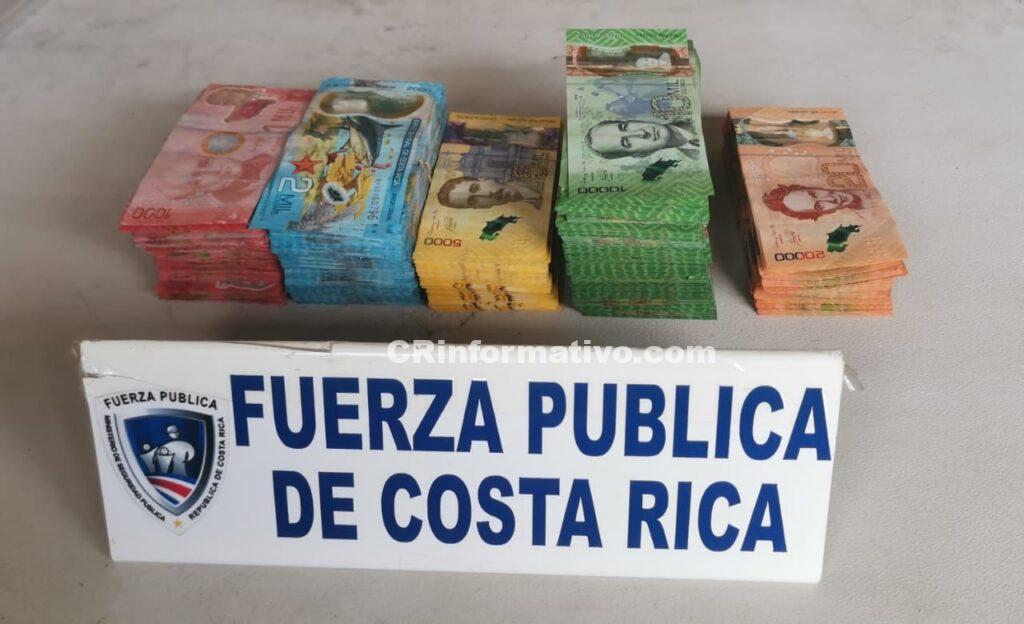 Oficiales de Fuerza Pública destacados en Moín, detuvieron la mañana de este jueves a dos hombres, quienes en el interior de un vehículo transportaban más de 10 millones de colones en efectivo.