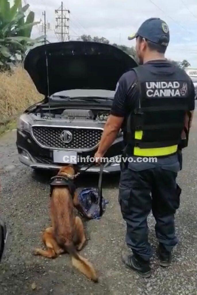 Posteriormente el can entrenado en detección de drogas, confirmó la presencia del dinero. Una vez realizado el conteo se determinó que se trataba de 10.800.000 colones.