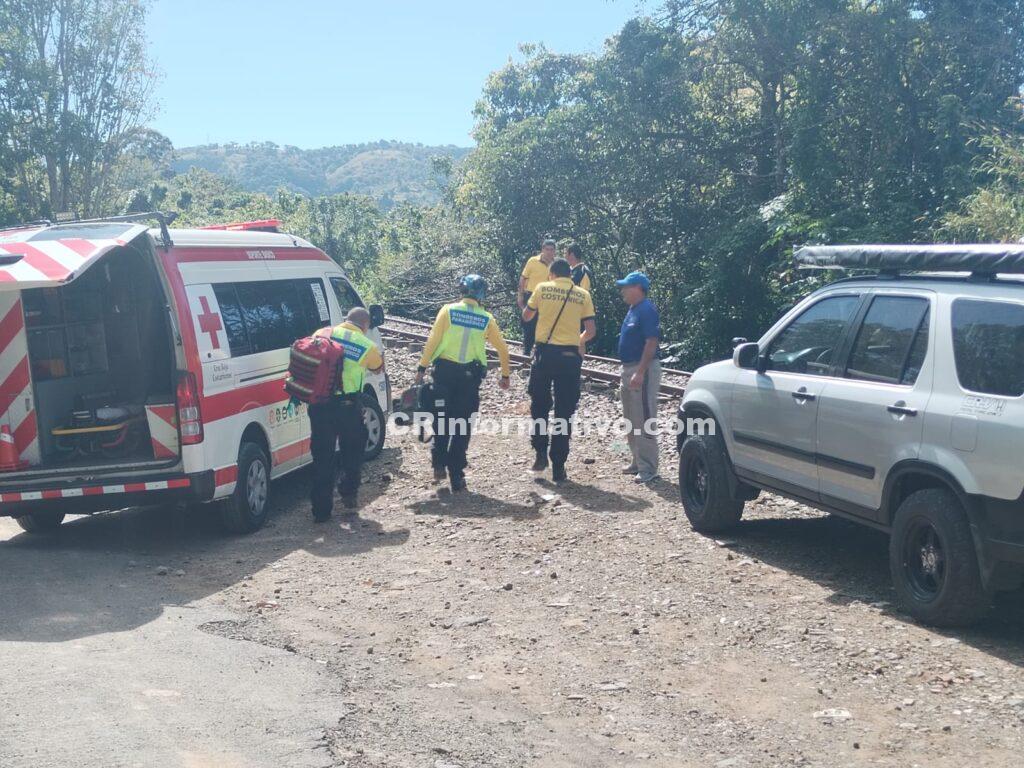 Unidad de Cruz Roja y Bomberos, se hace presentes al lugar para realizar la extracción del hombre