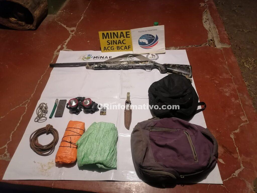 Oficiales de la Policía de Fronteras, así como guardaparques del Sistema Nacional de Áreas de Conservación (SINAC), detuvieron a dos presuntos cazadores armados cerca de un área protegida.