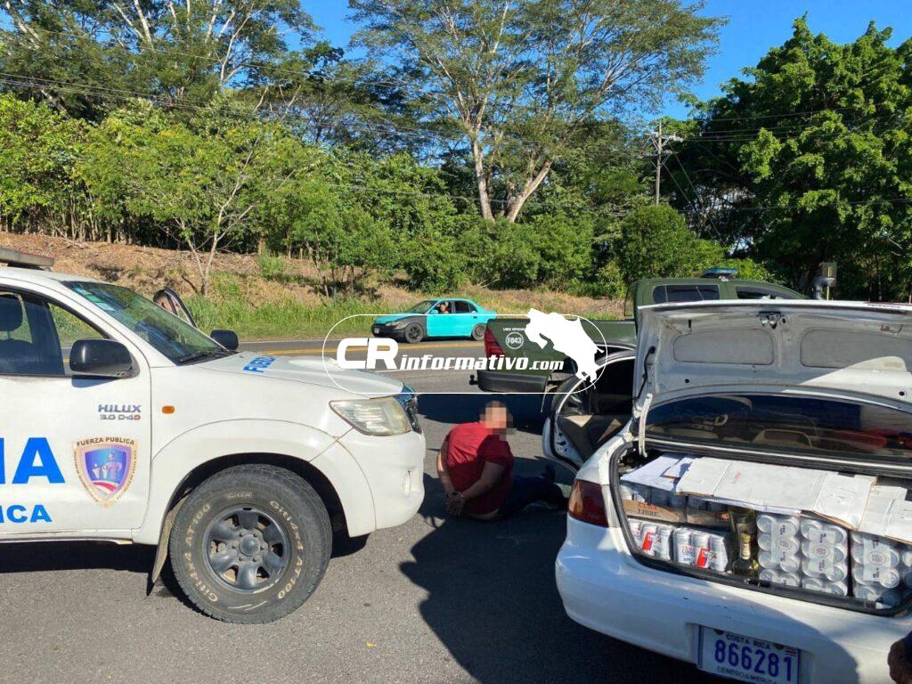 Tras una persecución que se prolongó desde Tárcoles, Garabito, Puntarenas y que culminó en Coyolar de Orotina, Alajuela, La Policía de Fronteras y la Fuerza Pública interceptaron un automóvil cargado con cerca de millón y medio de licores.
