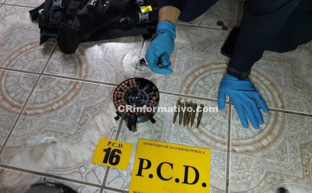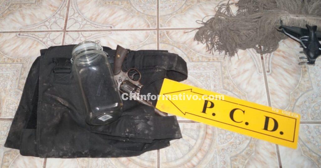 Lo que inició con un patrullaje que realizaba la Fuerza Pública en el barrio 25 de Julio de Liberia en Guanacaste, donde los oficiales detuvieron a un sujeto que aparentemente les apuntó con un arma de fuego y amenazó; concluyó con que la Policía Control de Drogas (PCD) allanara un inmueble, capturara a dos personas más y realizara decomisos de drogas, arma de fuego, municiones y otros.