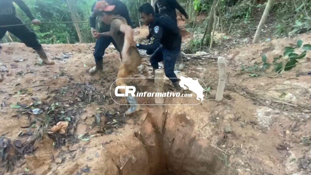 La prisa que tenían por escapar de los policías que patrullaban el cerro Fortuna, la mañana de este martes en Crucitas de Cutris, frontera norte, ocasionó que algunos oreros soltaran el mecate con el que estaban subiendo a su colega.