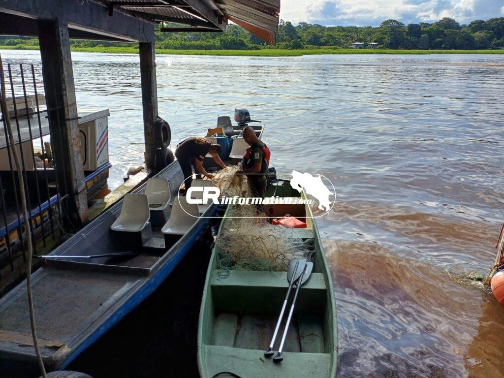 Los oficiales de la Delegación de la Fuerza Pública de Colorado, recibieron una alerta la madrugada del martes acerca de que varios sujetos habían colocado unos trasmallos en la desembocadura de la Barra del Tortuguero.