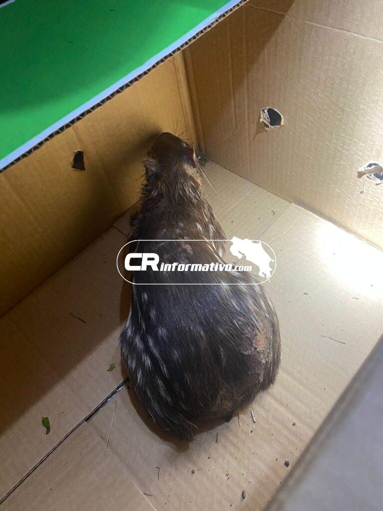 El pasado sábado, en horas de la tarde, la Fuerza Pública mantenía un control de carreteras en el Barrio Los Ángeles, ubicado en el distrito de Santa Rosa, en el cantón de Tilarán, Guanacaste. El conductor de un vehículo se percató del control policial y frenó metros antes. Luego, un sujeto se bajó del automotor con un saco en el que llevaba un tepezcuintle, aparentemente con el fin de liberarlo, por lo que fue intervenido por los uniformados.