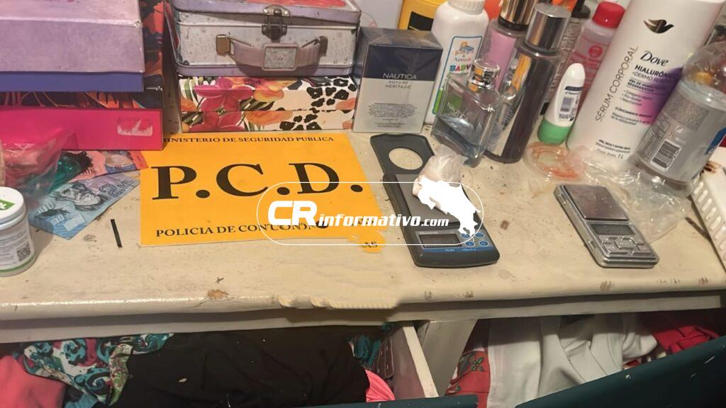 Los oficiales antidrogas allanaron ayer lunes una vivienda ubicada en el distrito de Sarchí Norte, muy cerca del parque central de la comunidad, donde el investigado realizaba el ilegal negocio que comenzó a generar más inseguridad porque se presentaban constantes robos y presencia de adictos en el lugar.