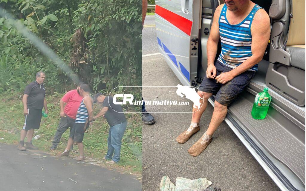 Personas que transitaban por la zona lo liberaron y una ambulancia privada lo atendió en el lugar para su estabilización. Según su testimonio, fue víctima de un asalto y abandonado en el sitio.