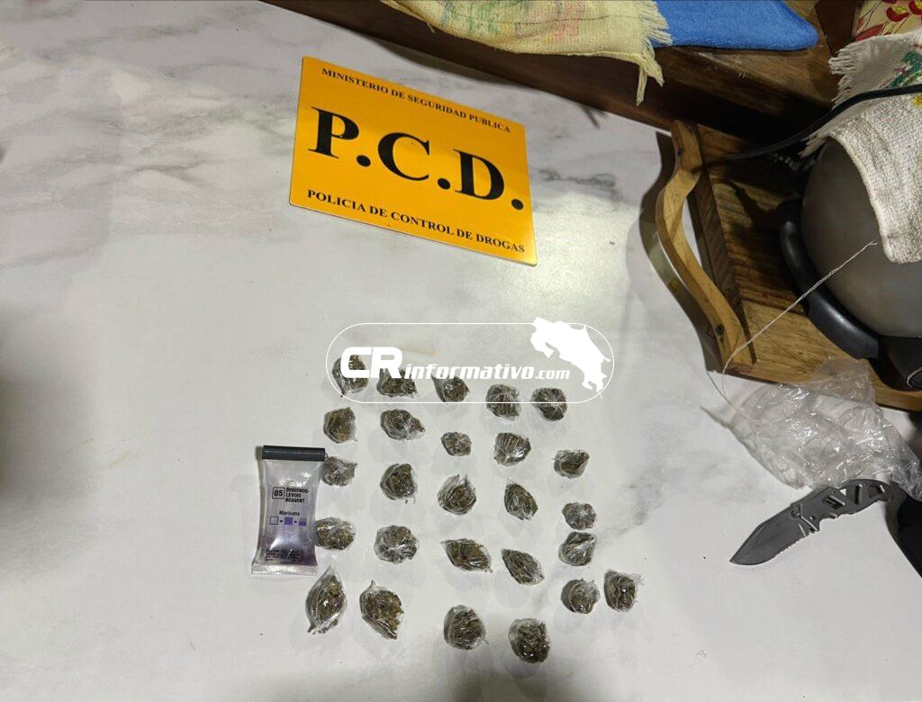 Los agentes antidrogas decomisaron un total de 65 dosis de crack, 40 envoltorios y 8, 9 gramos de marihuana, 29 municiones de distintos calibres y 175 mil colones.