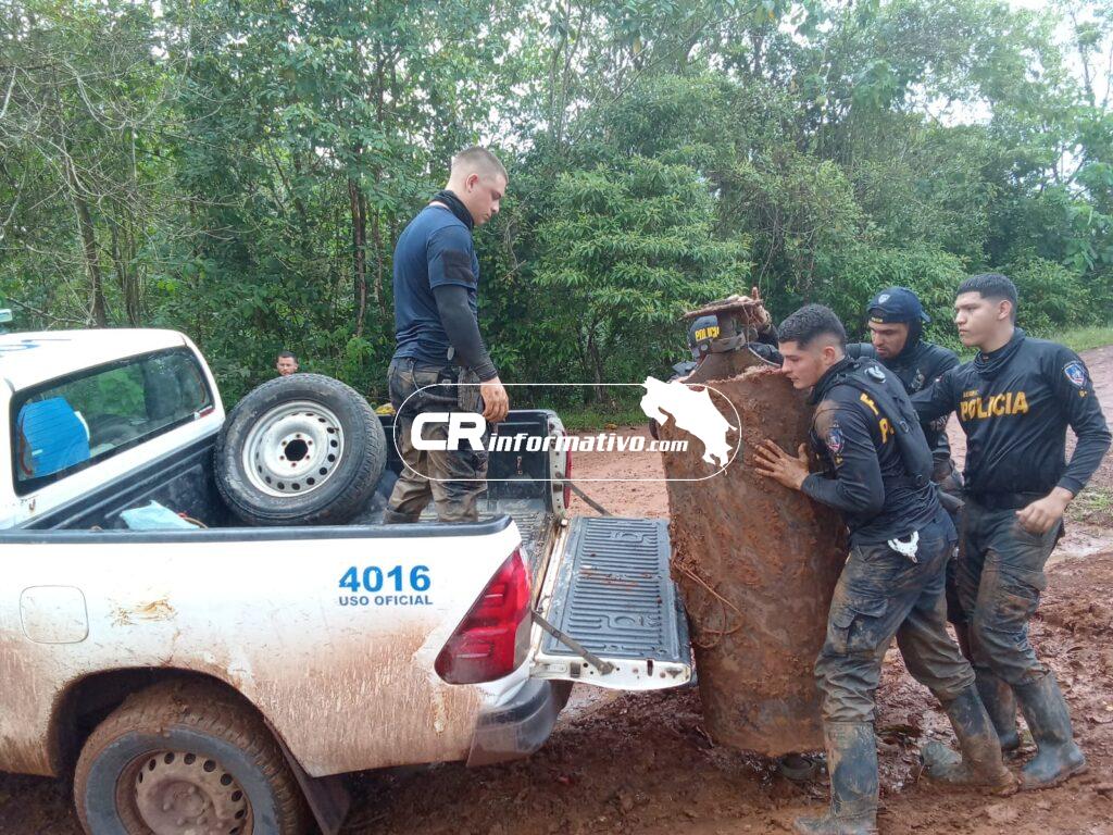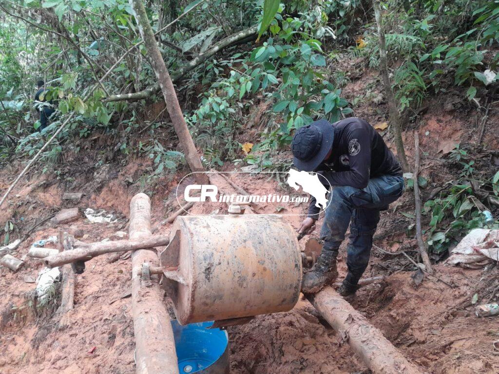 Por tal motivo la Fuerza Pública realiza patrullajes las 24 horas del día para detectar y decomisar estas máquinas que, desde que empezaron a ser usadas en Crucitas, hicieron que la extracción y procesamiento de sedimento minero pasara de ser una mera actividad artesanal y manual a una actividad de tipo industrial.