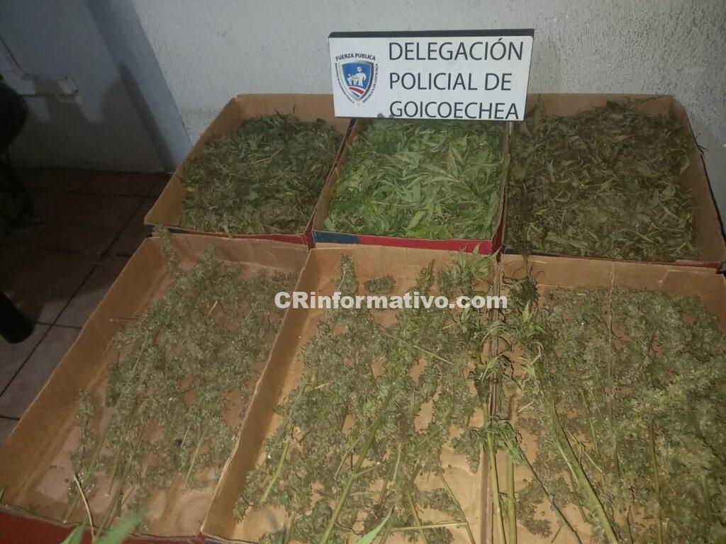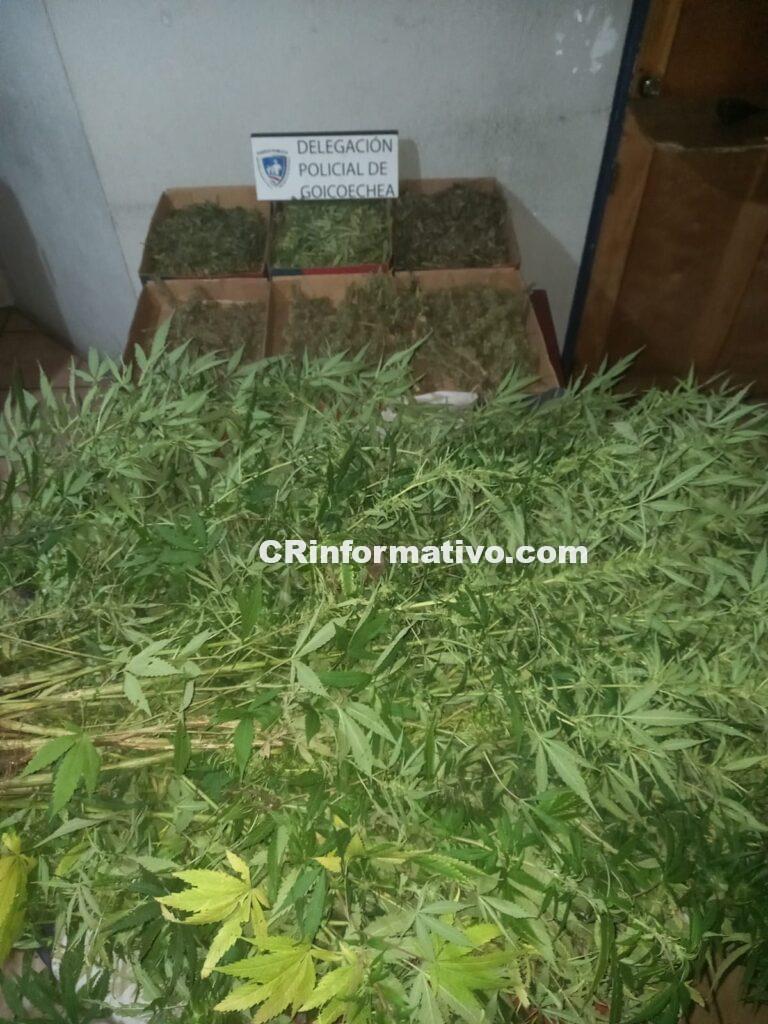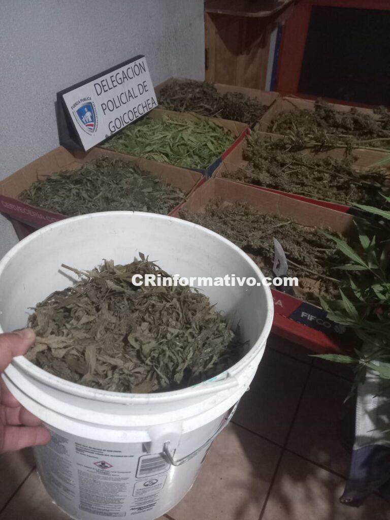 Los agentes ubicaron un balde y varias cajas con plantas y picadura de aparente marihuana, la cual dio un peso aproximado de 4.400 gramos.