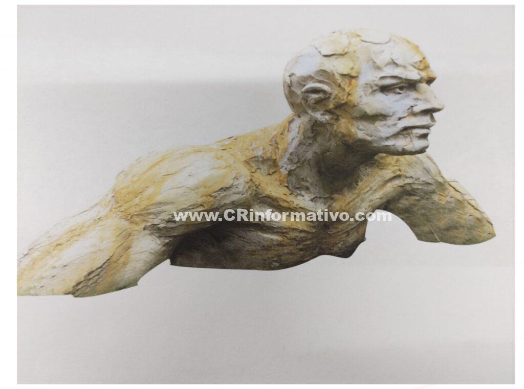 Se trata de una escultura como la que se aprecia en la imagen adjunta, con forma de cabeza y medio torso de un hombre, color gris, cuyos materiales son fenocemento, resina y acero, la cual mide 50 cm de alto, 95 cm de ancho y 50 cm de fondo.