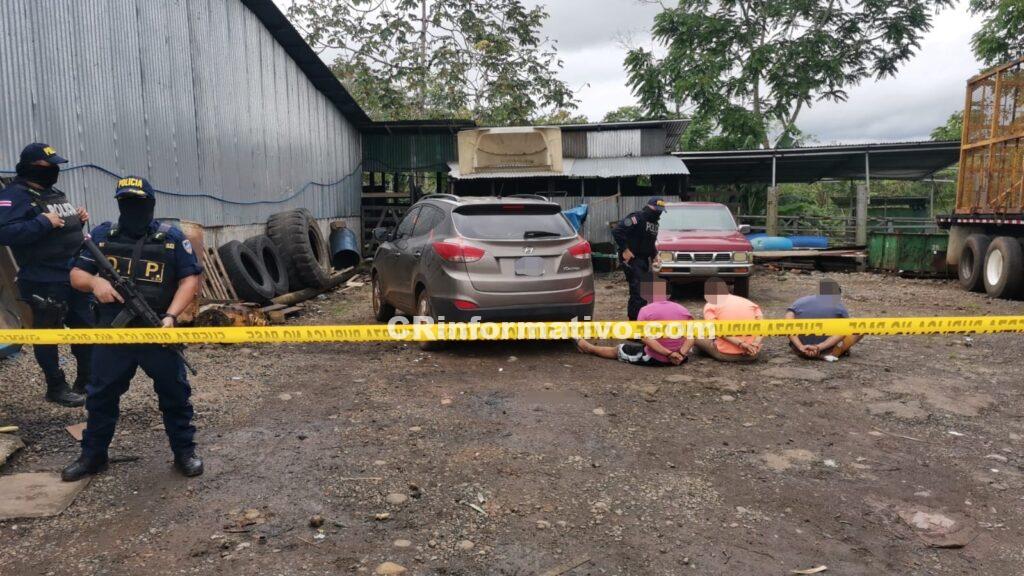 Los detenidos por este caso son tres hombres de apellidos Sambrana, de 39 años de edad, Quirós, de 29 años, y Artavia, 38 años de edad, quienes fueron remitidos a la Fiscalía de Ciudad Quesada